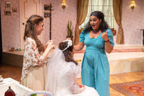 Dress in two pieces to show passage of time. Skirt was added offstage by crew.